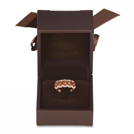 Please note: This ring is available in limited sizes If you dont see your size here, please visit a store to order your ringFive succulent Creme Brulee Diamonds are orbited by tempting Nude Diamonds in this stunning women’s ring from celebrating their 20th Anniversary Fashioned in 14K Strawberry Gold, the ring has a total diamond weight of 1 1/2 carats.